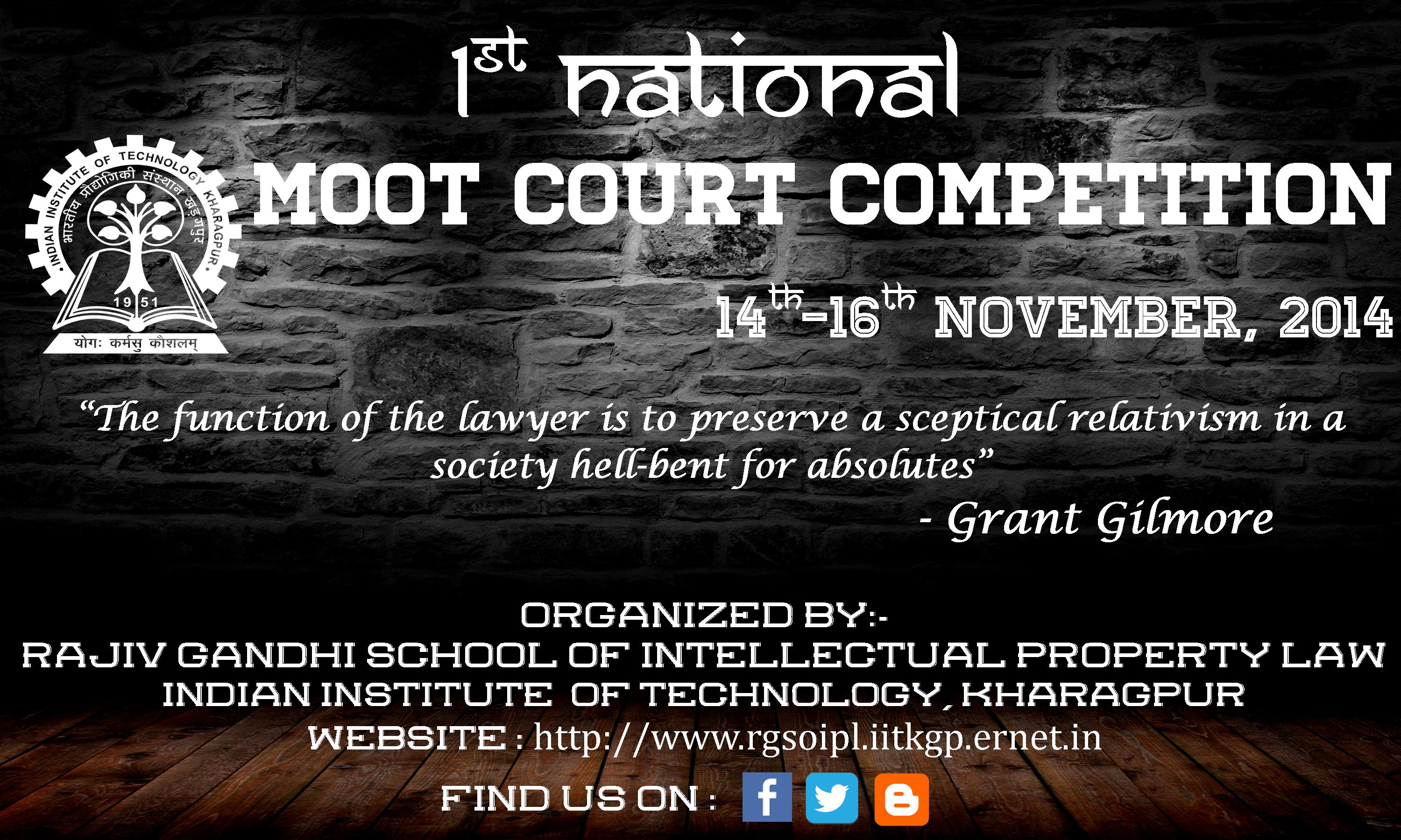 The Rajiv Gandhi School of Intellectual Property Law, IIT Kharagpur is organizing the 1st IIT Law School National Moot Court Competition from 14 – 16 November, 2014.