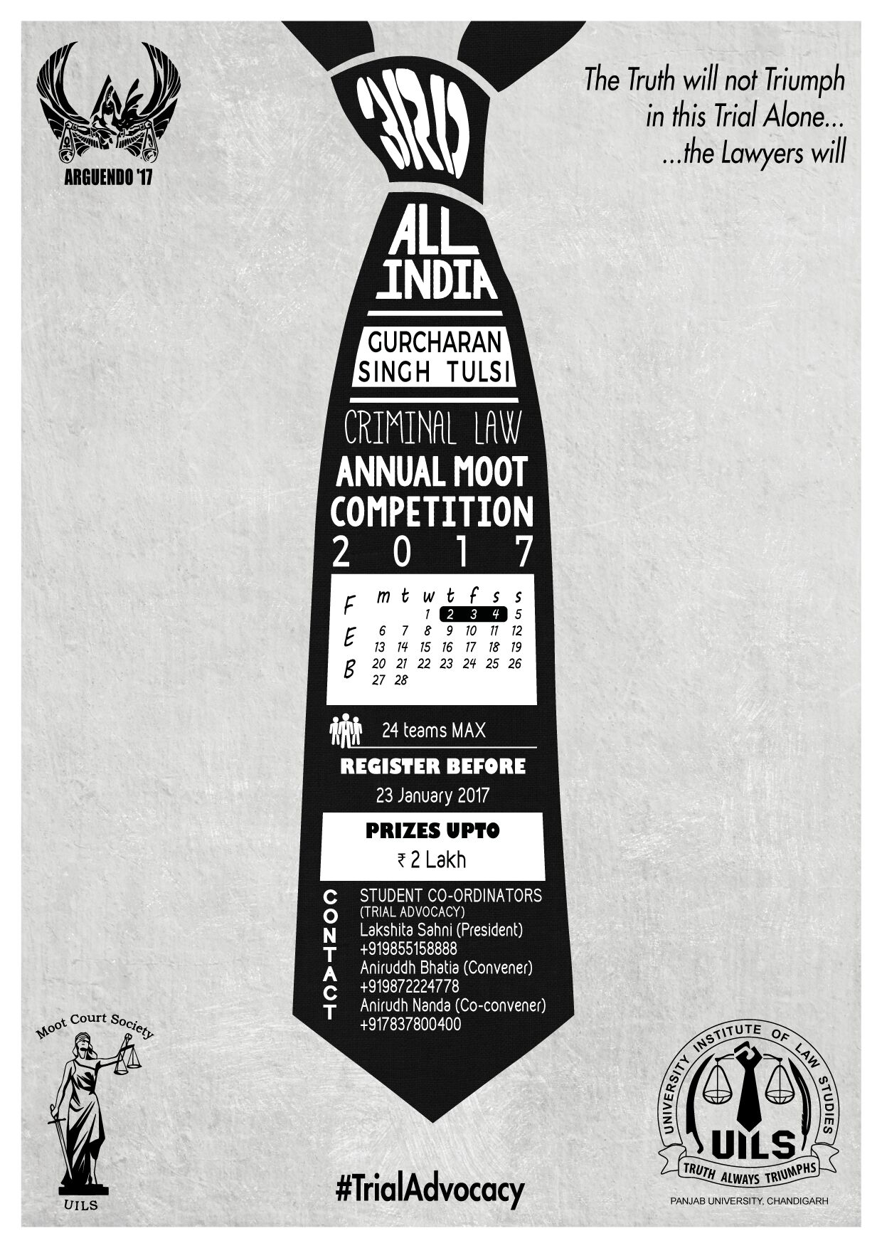 University Institute of Legal Studies (UILS) is pleased to announce and invite a team from your institute/college/university to participate in its Third Edition of its Law Fest, “Arguendo” being organized from 2nd to 4th February, 2017.