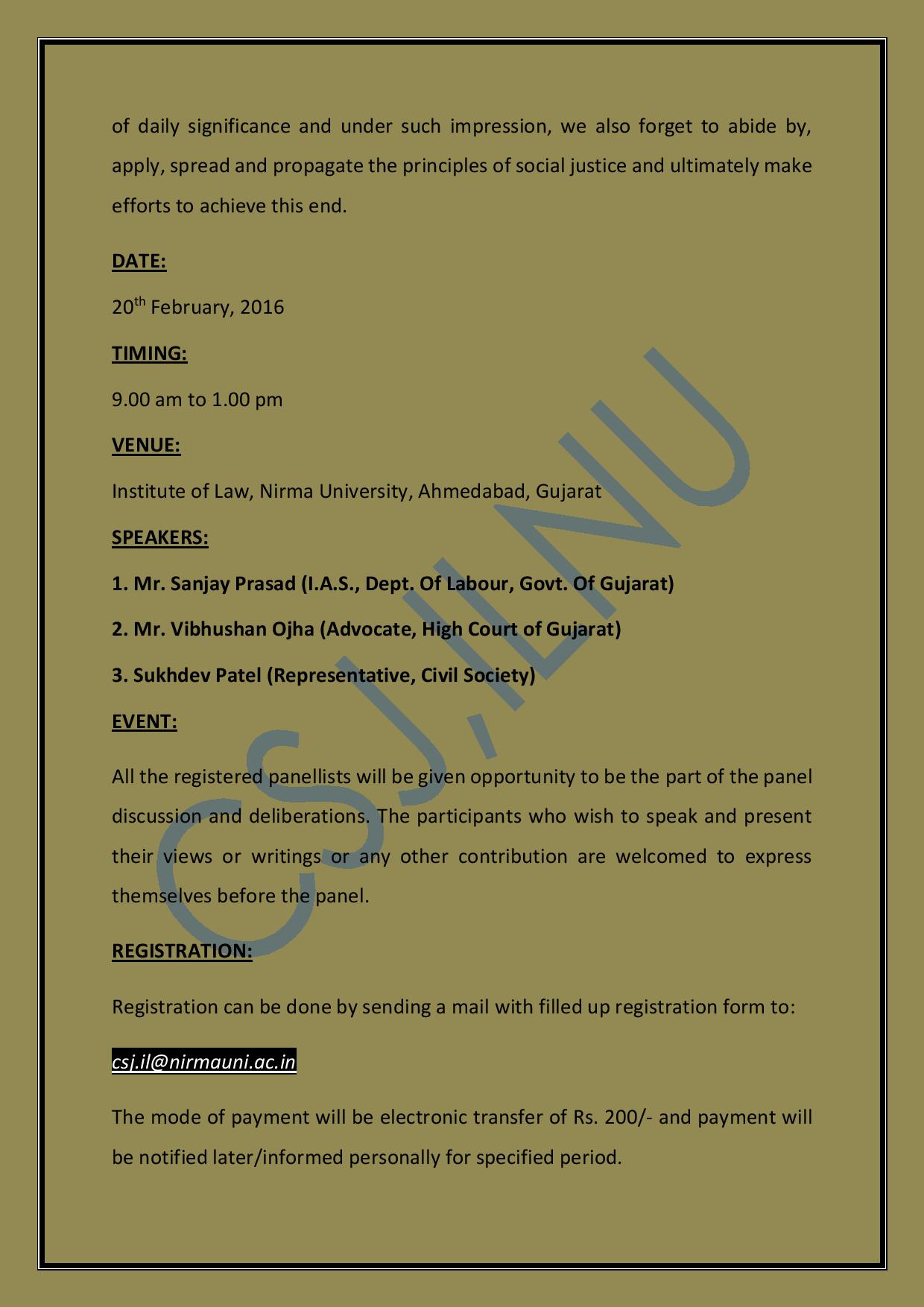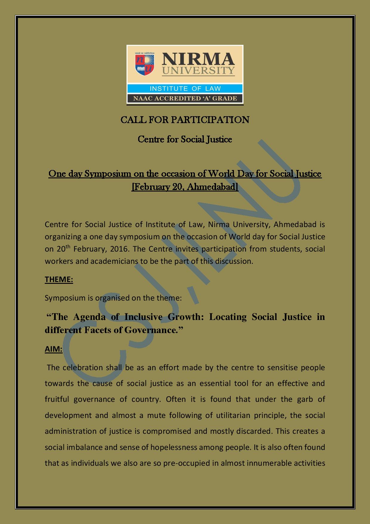Call for Applications: Nirma University’s Symposium on World Day for Social Justice [Feb 20, Ahmedabad]: Registration Open