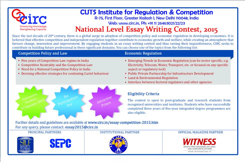 The winners of the essay writing competition shall be intimated though their contact details submitted by them as well as published on the CIRC Website.