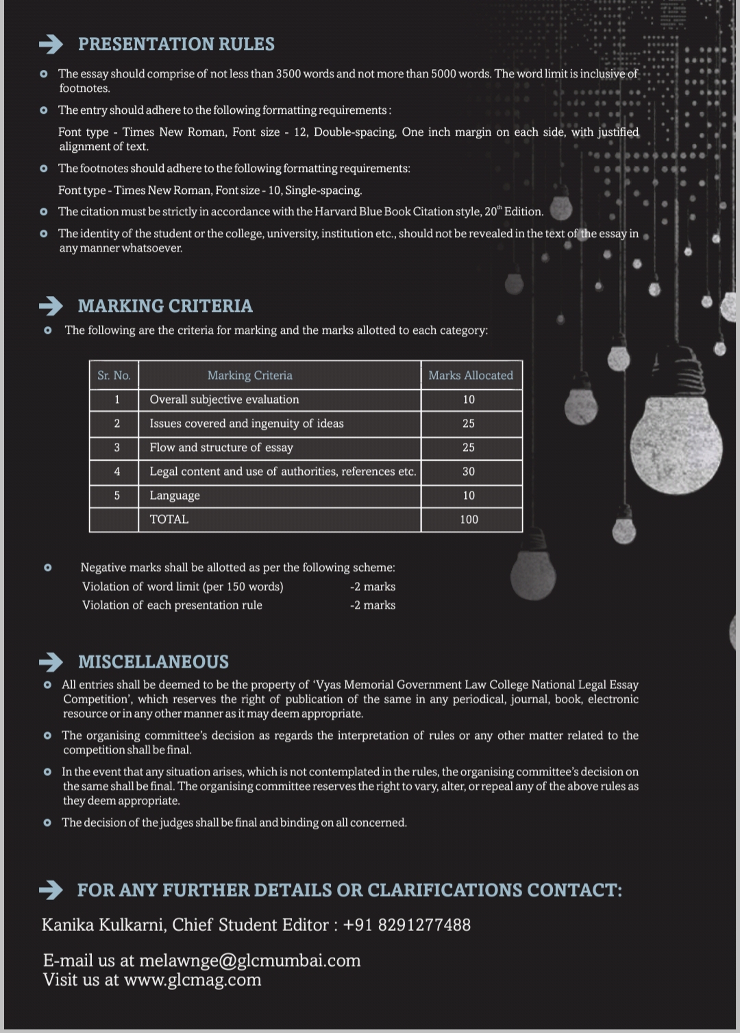 In case of any queries, send an email to melawnge@glcmumbai.com