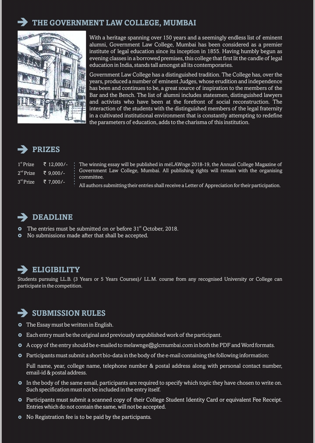 The Magazine Committee of the Government Law College now invites entries for the same.