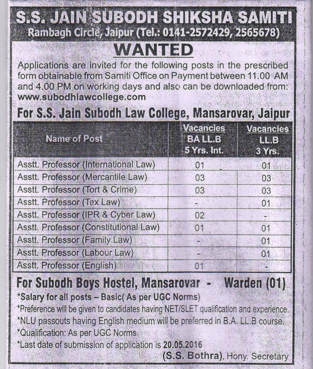 Home Opportunities Jobs JOB POST: Faculty @ SS Jain Subodh Law College, Jaipur : Apply... OpportunitiesJobs JOB POST: Faculty @ SS Jain Subodh Law College, Jaipur [22 Posts]: Apply by May 20 By Lawships - May 11, 2016 907 FacebookTwitterPinterestWhatsApp Website is HERE. RELATED ARTICLESMORE FROM AUTHOR Nirma Internațional Conference on Law by Nirma University, Ahmedabad: Submit Extended Abstract / Full Research Paper by Jan 02, 2026! Internship Opportunity at Cashfree, Bangalore: Applications Open Call for Papers: Comparative Constitutional Law and Administrative Law Journal [Vol 5, Issue 1]: Submit by July 15 Call for Blogs: All India Legal Forum: No Fees, Rolling Submissions Webinar Session on Academic and Article Writing by NALSAR Alumni Cell [June 14, 5 PM]: Register Now! LEAVE A REPLY Cancel reply Please enter your comment! Please enter your name here You have entered an incorrect email address! Please enter your email address here Save my name, email, and website in this browser for the next time I comment.