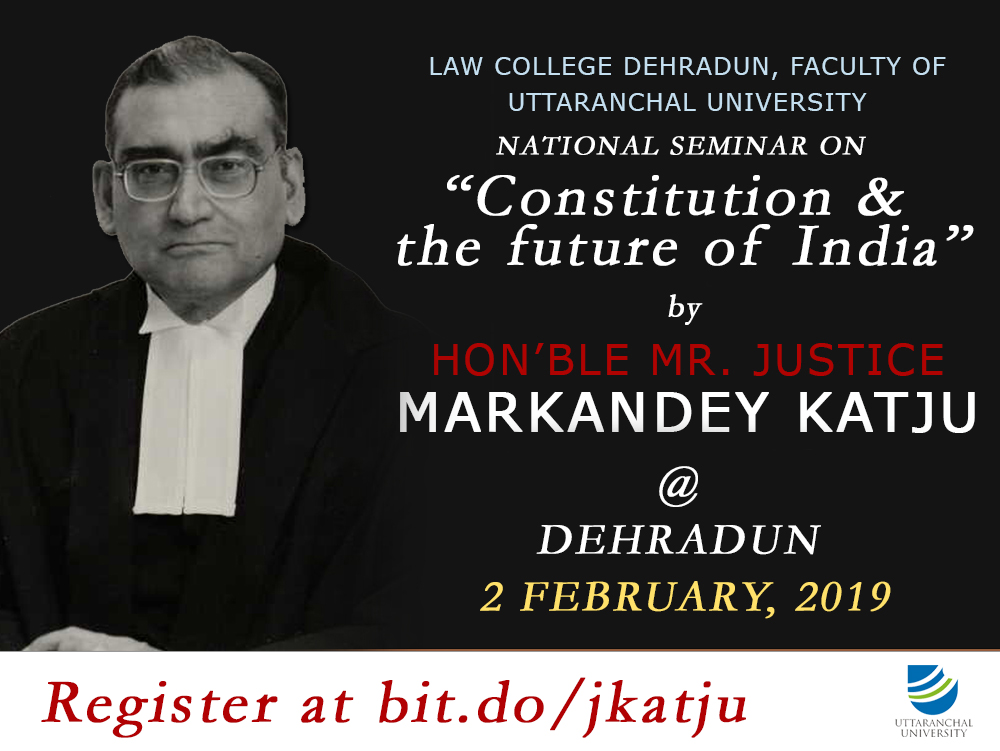 Law College Dehradun, Faculty of Uttaranchal University is hosting a National Seminar on Constitutional Law on 2nd February 2019 at Dehradun from 12:30 PM onwards.