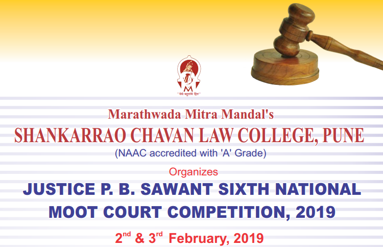 Marathwada Mitra Mandal’s Shankarrao Chavan Law College, Pune is organising the ‘Justice P. B. Sawant Sixth National Moot Court Competition 2018-19’.