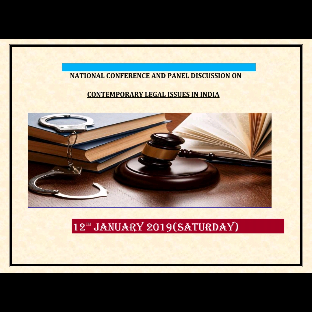 The National Conference and Panel Discussion on Contemporary legal Issues in India will be held on 12th January 2019 (Saturday).