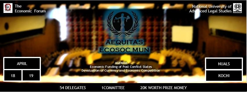 The National University of Advanced Legal Studies, one of the eminent National Law Universities in India, is organising its first edition of ECOSOC Model United Nations as a part of its annual economic fest, AEQUITAS between April 18-19, 2015.