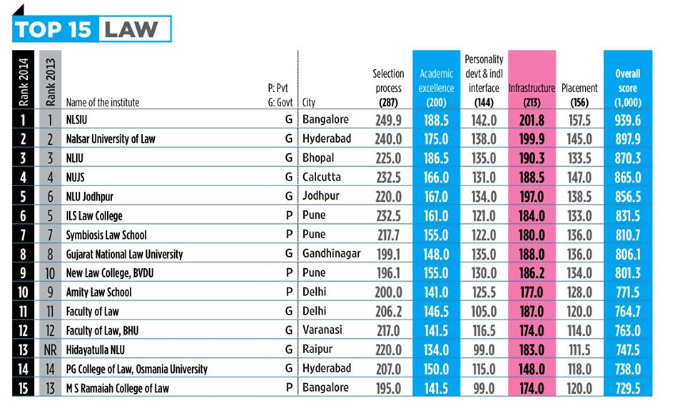 Best ranking so far, though NUJS and BVDU should be lower and HNLU and Amity should be higher.