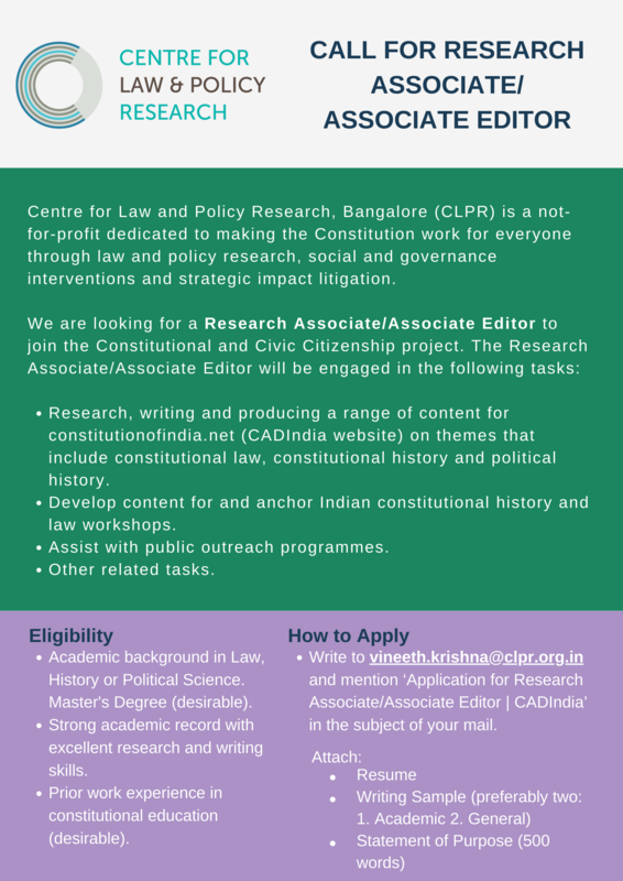 Centre for Law and Policy Research, Bangalore (CLPR) is a not-for-profit dedicated to making the Constitution work for everyone through law and policy research, social and governance interventions and strategic impact litigation.