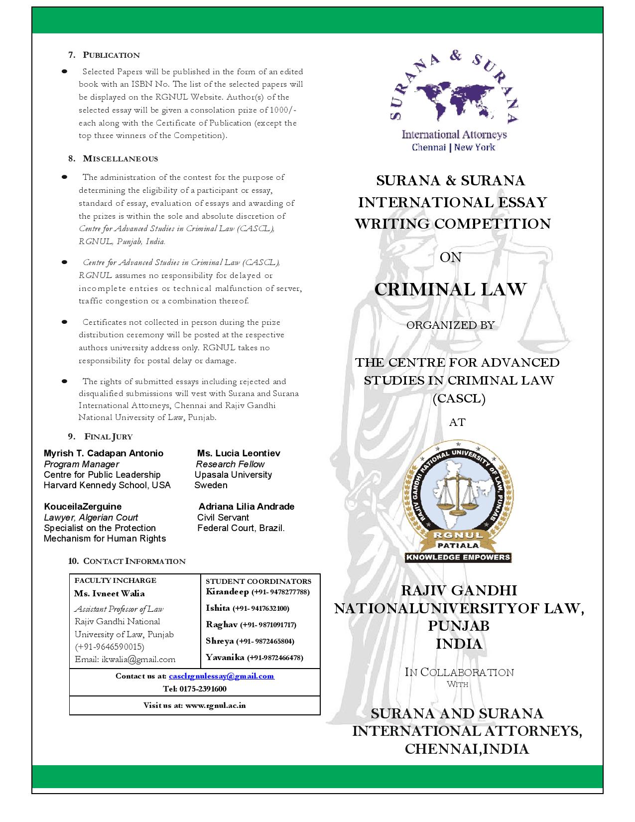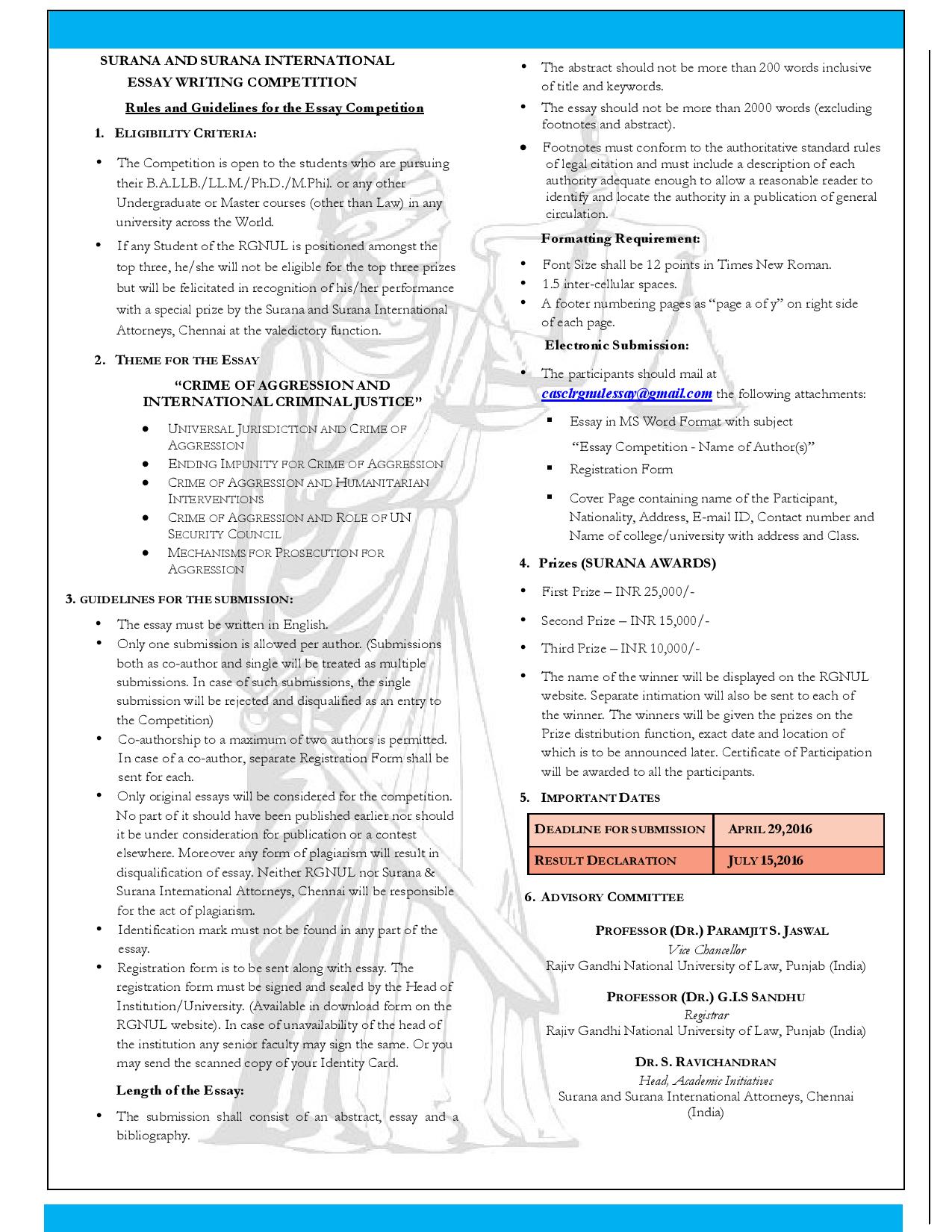 Home Opportunities Essay Competitions RGNUL’s Surana & Surana International Essay Writing Competition on Criminal Law :...