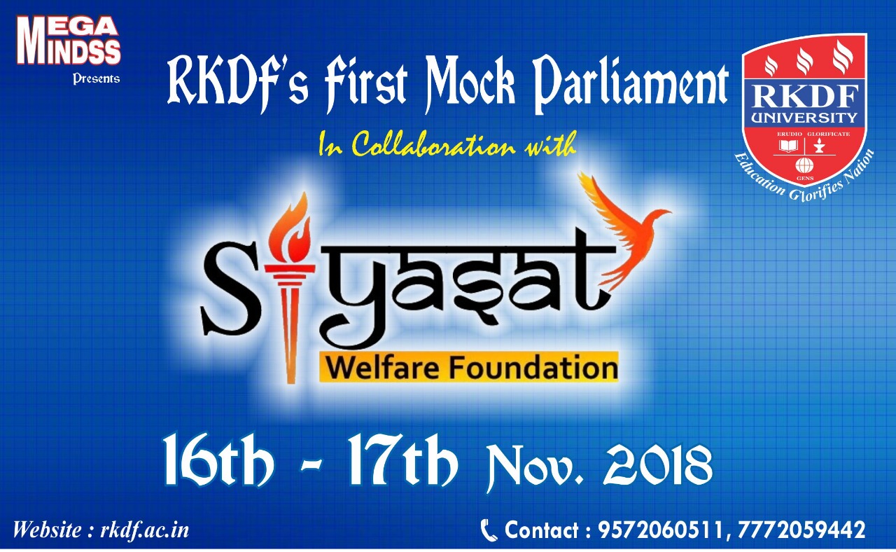 To let impeccable thinkers speak their minds out, in order to make a dash on the evils of the society and blow the winning triumphs. The stigma attached to the freedom of Speech has to be eradicated, here plays the Mock Parliament a pioneer role and so here the RKDF University has come up with its 1st Mock Parliament.