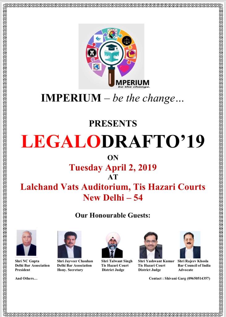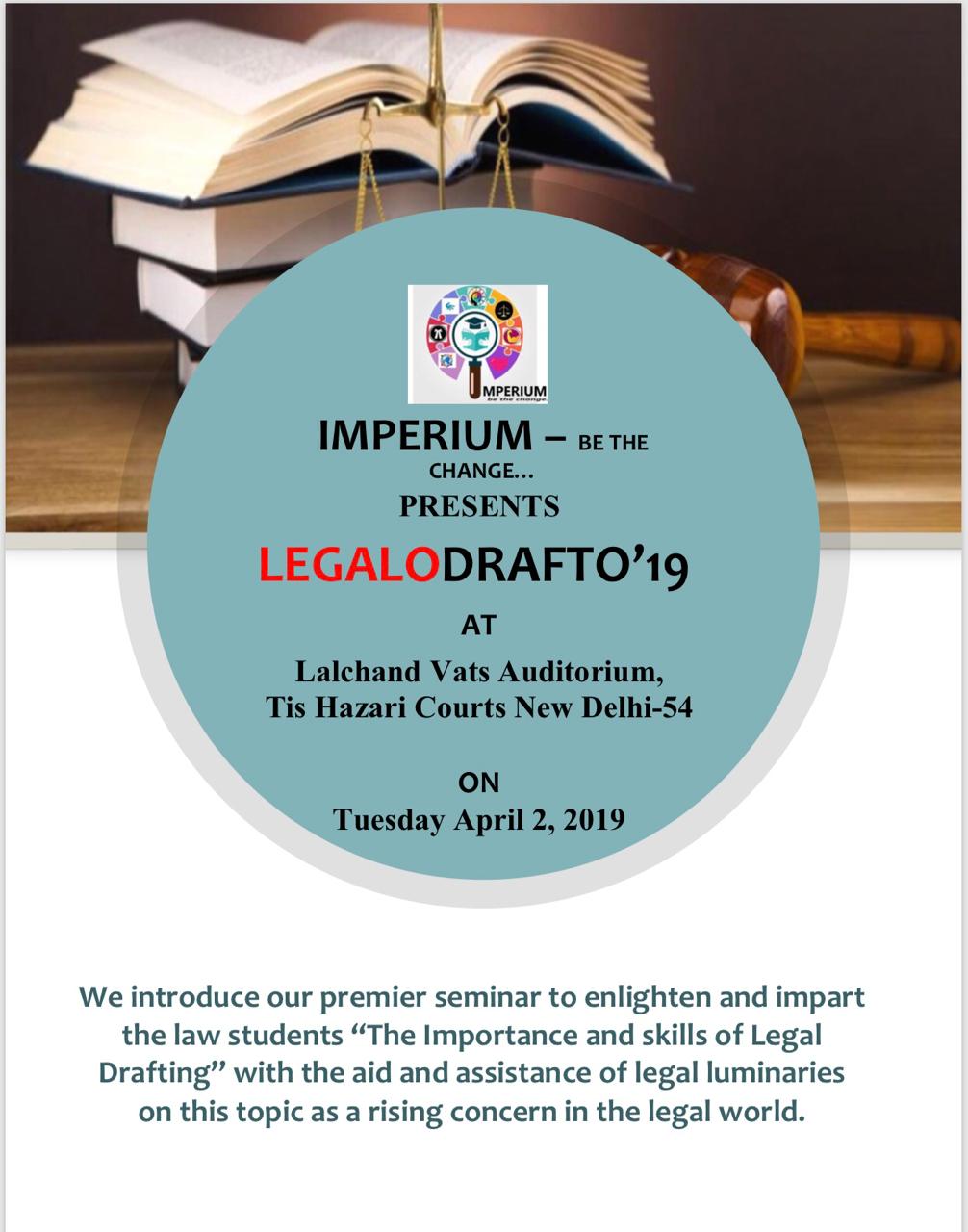 This is the upcoming event by the “Imperium – be the change”. This seminar is intended to impart the importance and skill of Legal Drafting to law students as a rising concern in the legal world.