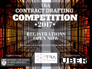 The TRA Contract Drafting Competition 2017 is organised by TRA in association with NLSIU, Bangalore as academic partner and UBER as thought partner.